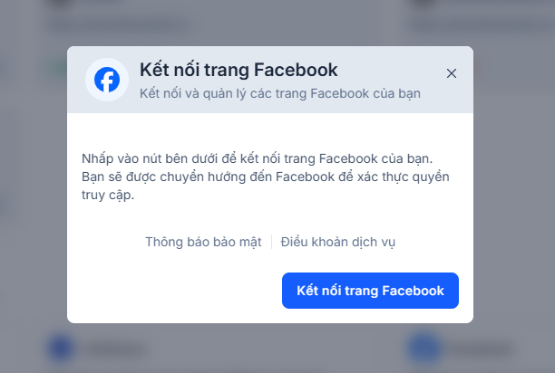 - Một popup hiện ra, nhấn Kết nối trang Facebook.