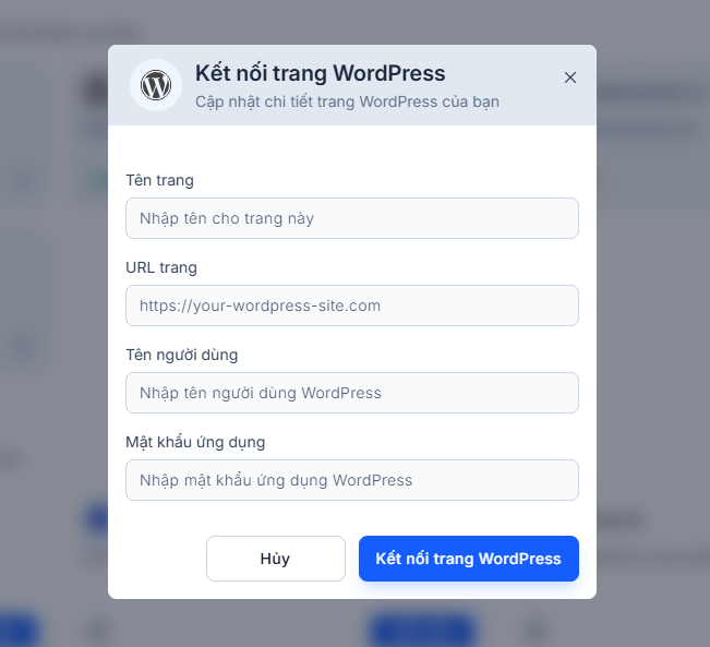 - Nhấn Kết nối trang WordPress để xác nhận.