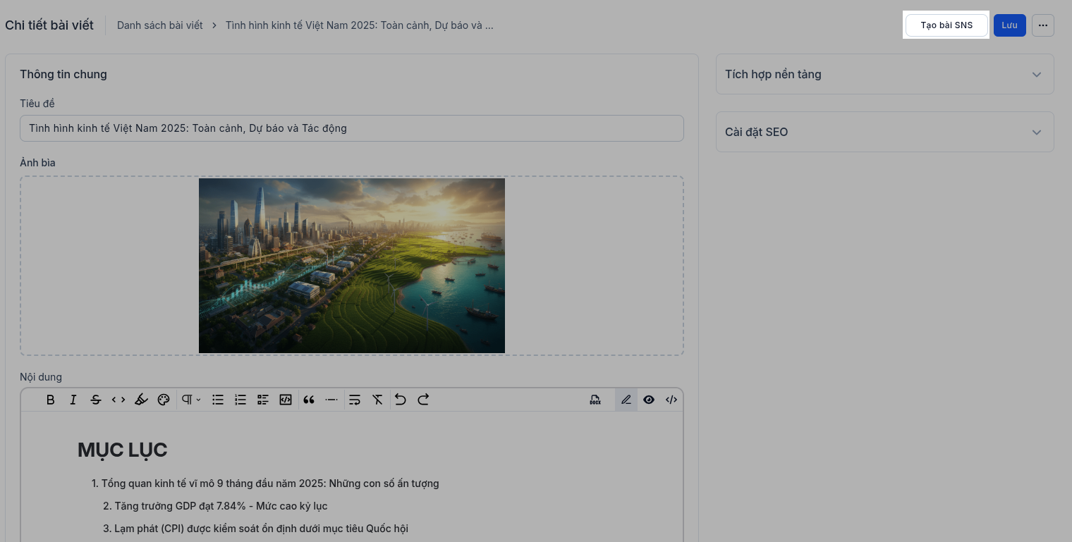 - Tiêu đề (1): Trường nhập tiêu đề bài SNS.